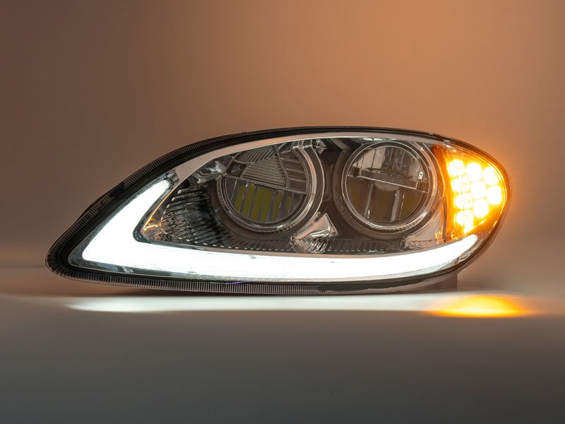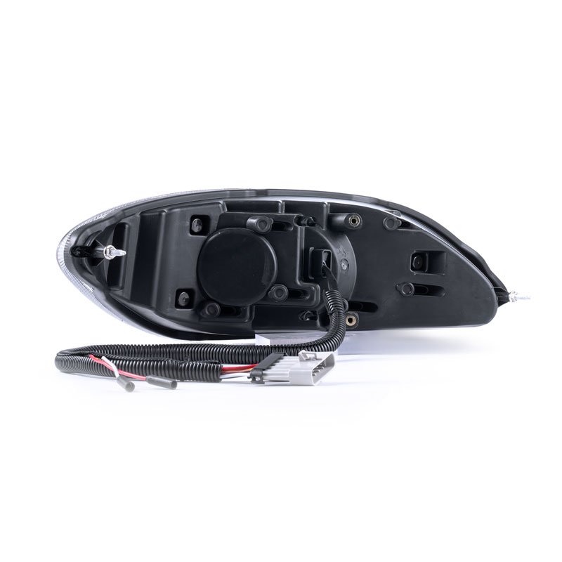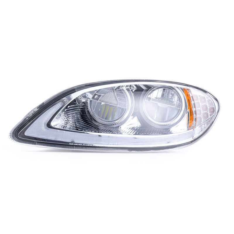 Designed specifically for International Prostar (2008+), this LED headlight assembly delivers a reliable lighting upgrade built for real-world trucking demands. Engineered to match factory wiring, it offers true plug-and-play installation with no drilling or modifications required, allowing for a quick, clean, and hassle-free replacement. Fully DOT and SAE approved for on-road use, the headlight features an IP67-rated sealed housing that provides dependable protection against water, dust, and harsh weather conditions. A scratch-resistant, UV-protected polycarbonate lens helps prevent yellowing and aging over time, while the sealed rear cover effectively blocks moisture intrusion and reduces vibration-related noise during operation. The precision-formed reflector housing is designed to distribute light evenly across the road, delivering a clear and balanced beam pattern. Its open reflector structure, combined with rear ventilation ports, promotes efficient heat dissipation, helps maintain lower internal operating temperatures, and minimizes light degradation over time. Built with premium CREE LED chips, this all-in-one headlight integrates high beam, low beam, turn signal, and parking light into a single, integrated assembly, delivering stable brightness, fast illumination response, and long-lasting performance. Rear-mounted beam adjusters allow easy vertical and horizontal alignment, enabling precise beam positioning for optimal road coverage and improved driving safety and comfort.
