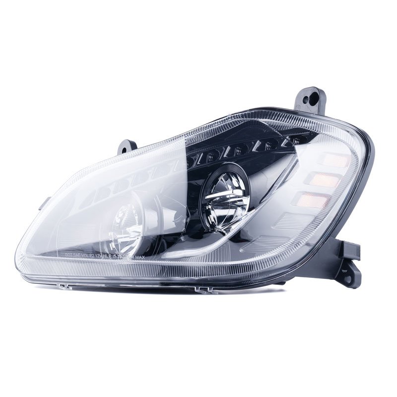 Designed specifically for Kenworth T680 2013-2021, this LED headlight assembly delivers a reliable lighting upgrade built for real-world trucking demands. Engineered to match factory wiring, it offers true plug-and-play installation with no drilling or modifications required, allowing for a quick, clean, and hassle-free replacement. Fully DOT and SAE approved for on-road use, the headlight features an IP67-rated sealed housing that provides dependable protection against water, dust, and harsh weather conditions. A scratch-resistant, UV-protected polycarbonate lens helps prevent yellowing and aging over time, while the sealed rear cover effectively blocks moisture intrusion and reduces vibration-related noise during operation. The precision-formed reflector housing is designed to distribute light evenly across the road, delivering a clear and balanced beam pattern. Its open reflector structure, combined with rear ventilation ports, promotes efficient heat dissipation, helps maintain lower internal operating temperatures, and minimizes light degradation over time. Built with premium CREE LED chips, this all-in-one headlight integrates high beam, low beam, turn signal, and parking light into a single, integrated assembly, delivering stable brightness, fast illumination response, and long-lasting performance. Rear-mounted beam adjusters allow easy vertical and horizontal alignment, enabling precise beam positioning for optimal road coverage and improved driving safety and comfort.