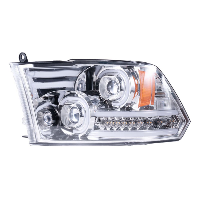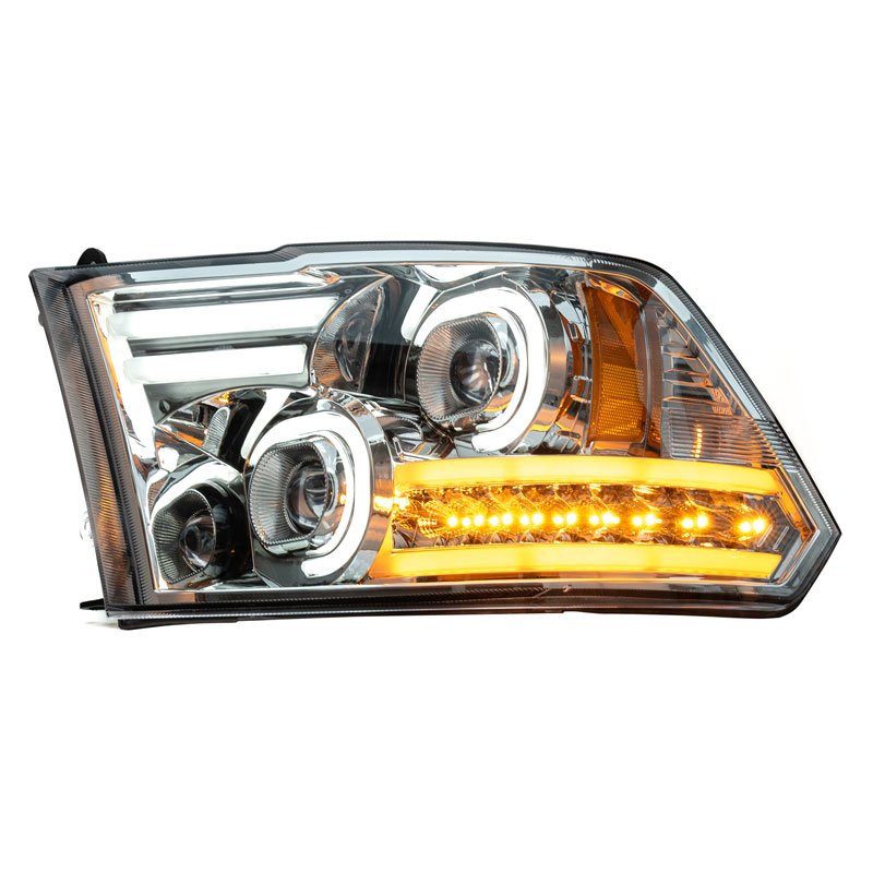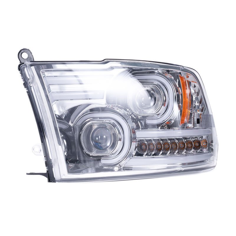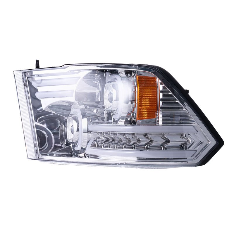 Designed specifically for Dodge Ram Pickup 1500/2500/3500 2018-2019, this fully sealed LED headlight assembly offers a plug-and-play style replacement. Matching factory wiring allows for quick setup without drilling or modification, making it easy to upgrade your vehicle’s lighting system. The all-in-one design integrates high beam, low beam, parking light, turn signal, and daytime running light into a single housing, powered by premium CREE LED chips that deliver stable brightness, fast response, and consistent illumination for improved nighttime visibility. Unlike traditional reflector headlights, this assembly features projector-style optical lenses that provide better light control and a more focused beam pattern. The optimized optics reduce scattered light and glare while delivering clearer forward visibility and a cleaner cutoff, helping enhance driving safety without blinding oncoming traffic. Built-in beam adjusters on the rear housing allow precise vertical and horizontal alignment, ensuring the light output can be fine-tuned to meet road conditions and personal driving preferences. Engineered for long-term durability, the headlight is DOT and SAE approved and features an IP67-rated, one-piece sealed housing that resists water and dust in all weather conditions. A scratch-resistant, UV-protected PC lens helps prevent yellowing and aging over time, while the sealed rear cover minimizes moisture intrusion and unwanted noise. Optimized ventilation improves heat dissipation, reducing light decay and extending the overall lifespan of the headlight assembly.