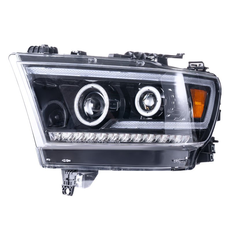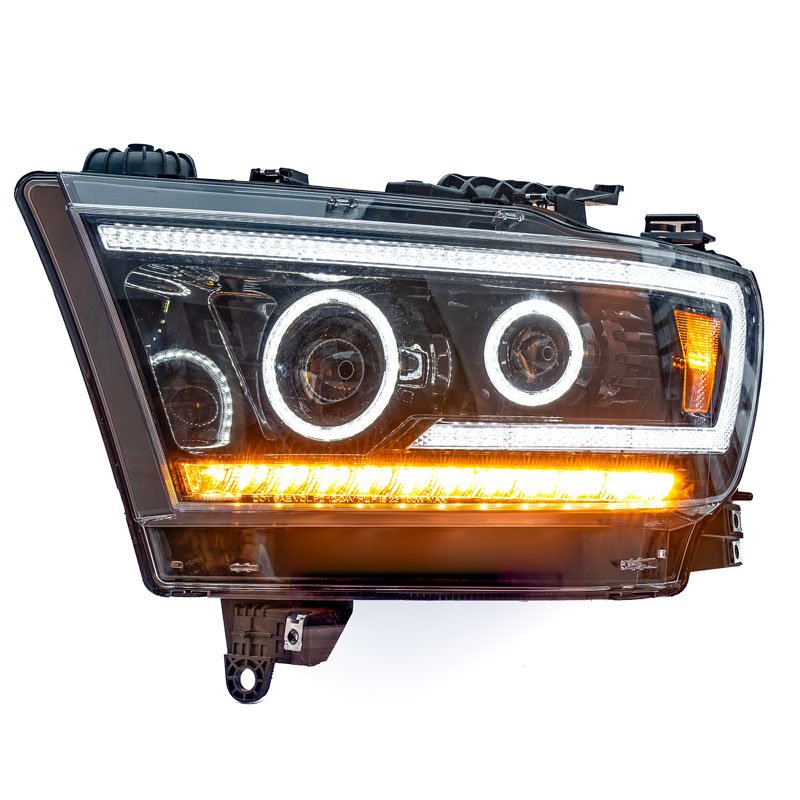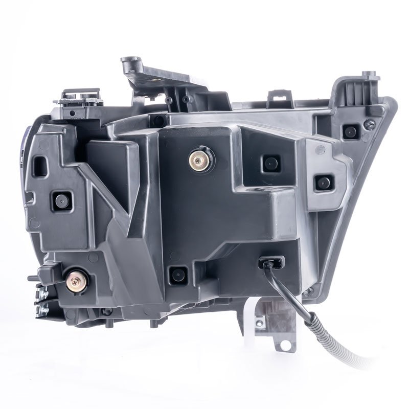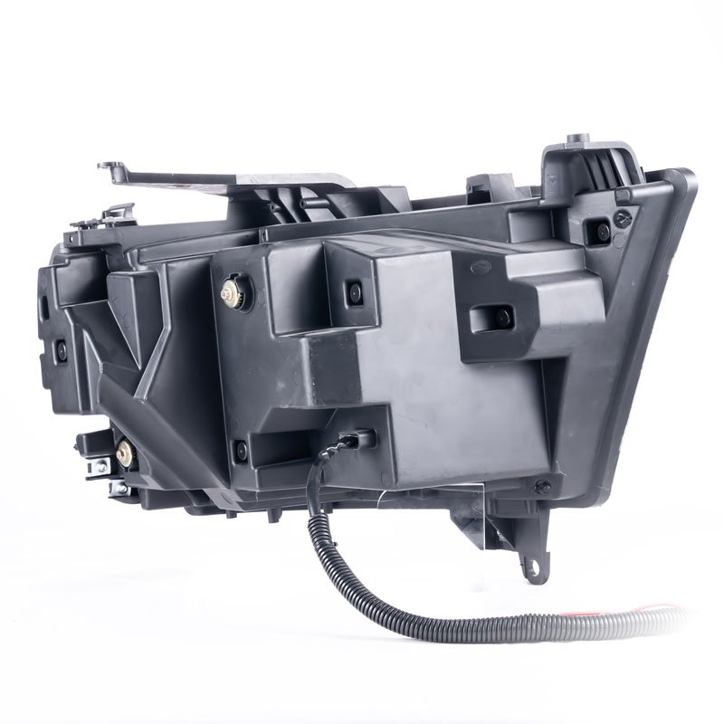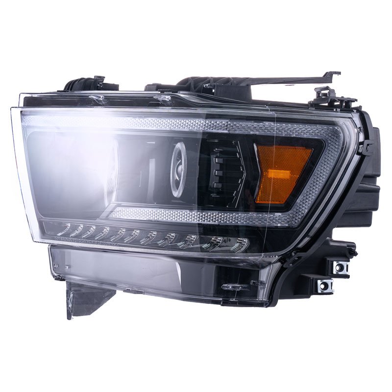 Designed specifically for Dodge Ram 1500 Pickup 2019-2021, this fully sealed LED headlight assembly offers a plug-and-play style replacement. Matching factory wiring allows for quick setup without drilling or modification, making it easy to upgrade your vehicle’s lighting system. The all-in-one design integrates high beam, low beam, parking light, turn signal, and daytime running light into a single housing, powered by premium CREE LED chips that deliver stable brightness, fast response, and consistent illumination for improved nighttime visibility. Unlike traditional reflector headlights, this assembly features projector-style optical lenses that provide better light control and a more focused beam pattern. The optimized optics reduce scattered light and glare while delivering clearer forward visibility and a cleaner cutoff, helping enhance driving safety without blinding oncoming traffic. Built-in beam adjusters on the rear housing allow precise vertical and horizontal alignment, ensuring the light output can be fine-tuned to meet road conditions and personal driving preferences. Engineered for long-term durability, the headlight is DOT and SAE approved and features an IP67-rated, one-piece sealed housing that resists water and dust in all weather conditions. A scratch-resistant, UV-protected PC lens helps prevent yellowing and aging over time, while the sealed rear cover minimizes moisture intrusion and unwanted noise. Optimized ventilation improves heat dissipation, reducing light decay and extending the overall lifespan of the headlight assembly.