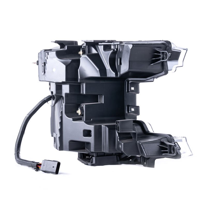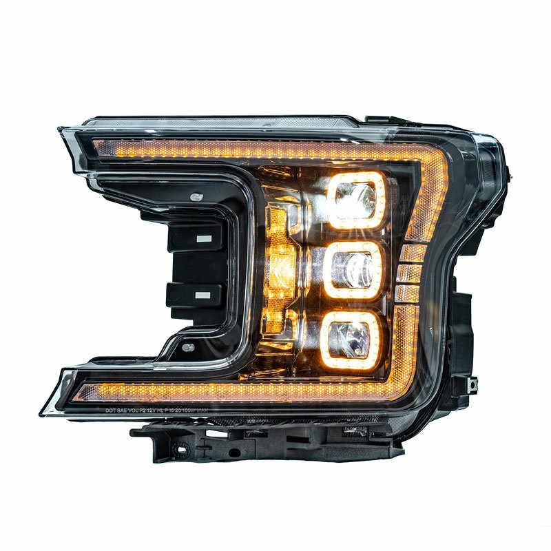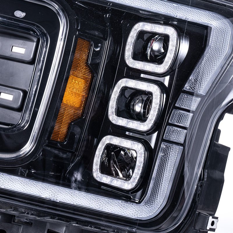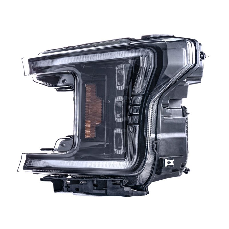 Designed specifically for Ford F150 2018-2019, this fully sealed LED headlight assembly offers a plug-and-play style replacement. Matching factory wiring allows for quick setup without drilling or modification, making it easy to upgrade your vehicle’s lighting system. The all-in-one design integrates high beam, low beam, parking light, turn signal, and daytime running light into a single housing, powered by premium CREE LED chips that deliver stable brightness, fast response, and consistent illumination for improved nighttime visibility. Unlike traditional reflector headlights, this assembly features projector-style optical lenses that provide better light control and a more focused beam pattern. The optimized optics reduce scattered light and glare while delivering clearer forward visibility and a cleaner cutoff, helping enhance driving safety without blinding oncoming traffic. Built-in beam adjusters on the rear housing allow precise vertical and horizontal alignment, ensuring the light output can be fine-tuned to meet road conditions and personal driving preferences. Engineered for long-term durability, the headlight is DOT and SAE approved and features an IP67-rated, one-piece sealed housing that resists water and dust in all weather conditions. A scratch-resistant, UV-protected PC lens helps prevent yellowing and aging over time, while the sealed rear cover minimizes moisture intrusion and unwanted noise. Optimized ventilation improves heat dissipation, reducing light decay and extending the overall lifespan of the headlight assembly.
