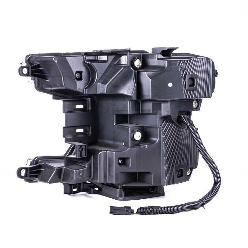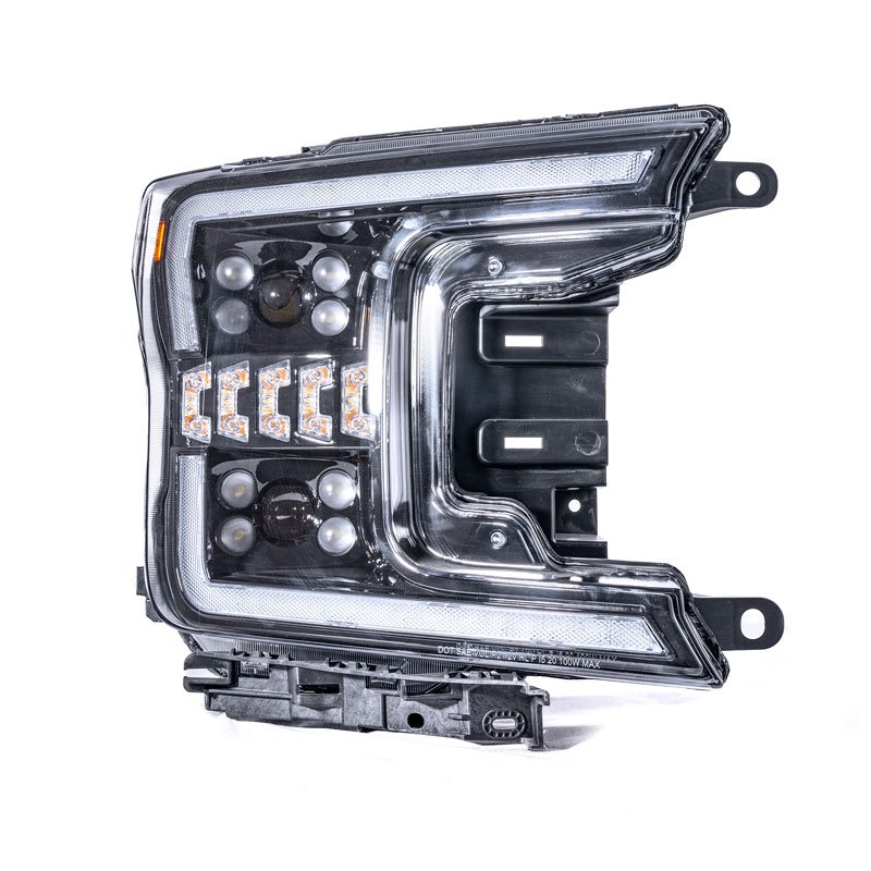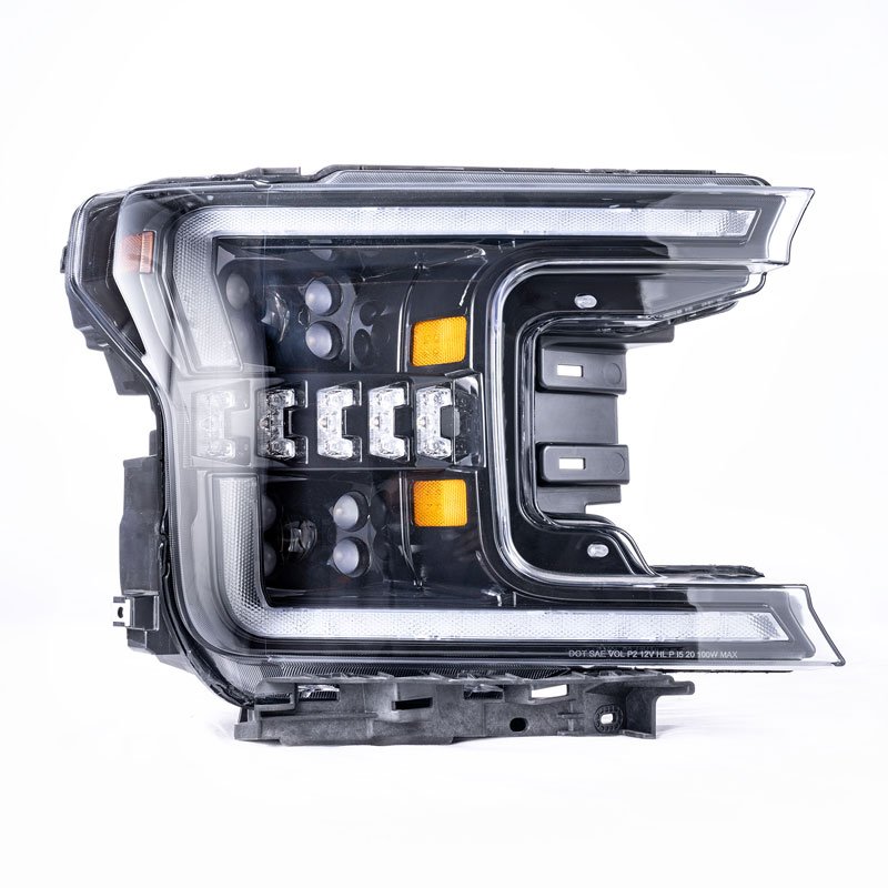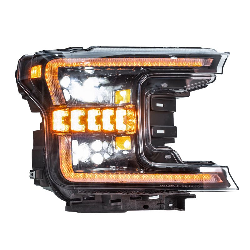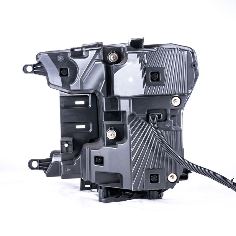 Designed specifically for Ford F150 2018-2019, this fully sealed LED headlight assembly offers a plug-and-play style replacement. Matching factory wiring allows for quick setup without drilling or modification, making it easy to upgrade your vehicle’s lighting system. The all-in-one design integrates high beam, low beam, parking light, turn signal, and daytime running light into a single housing, powered by premium CREE LED chips that deliver stable brightness, fast response, and consistent illumination for improved nighttime visibility. Unlike traditional reflector headlights, this assembly features projector-style optical lenses that provide better light control and a more focused beam pattern. The optimized optics reduce scattered light and glare while delivering clearer forward visibility and a cleaner cutoff, helping enhance driving safety without blinding oncoming traffic. Built-in beam adjusters on the rear housing allow precise vertical and horizontal alignment, ensuring the light output can be fine-tuned to meet road conditions and personal driving preferences. Engineered for long-term durability, the headlight is DOT and SAE approved and features an IP67-rated, one-piece sealed housing that resists water and dust in all weather conditions. A scratch-resistant, UV-protected PC lens helps prevent yellowing and aging over time, while the sealed rear cover minimizes moisture intrusion and unwanted noise. Optimized ventilation improves heat dissipation, reducing light decay and extending the overall lifespan of the headlight assembly.