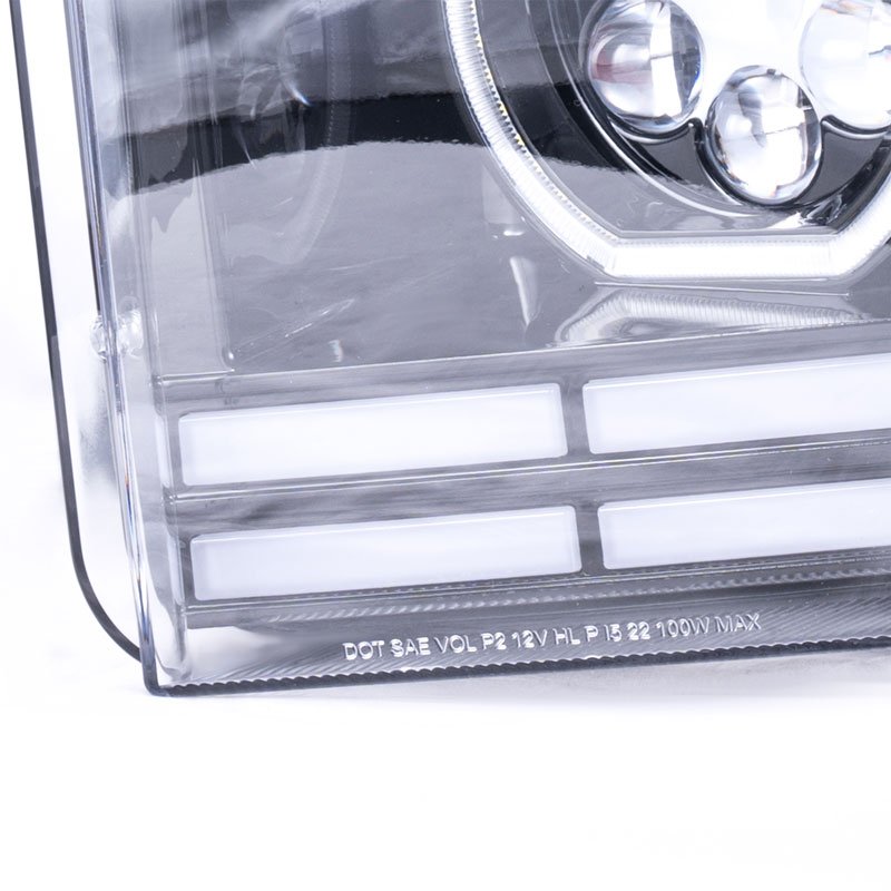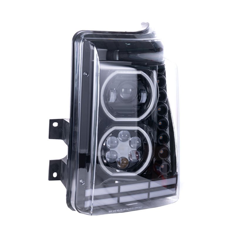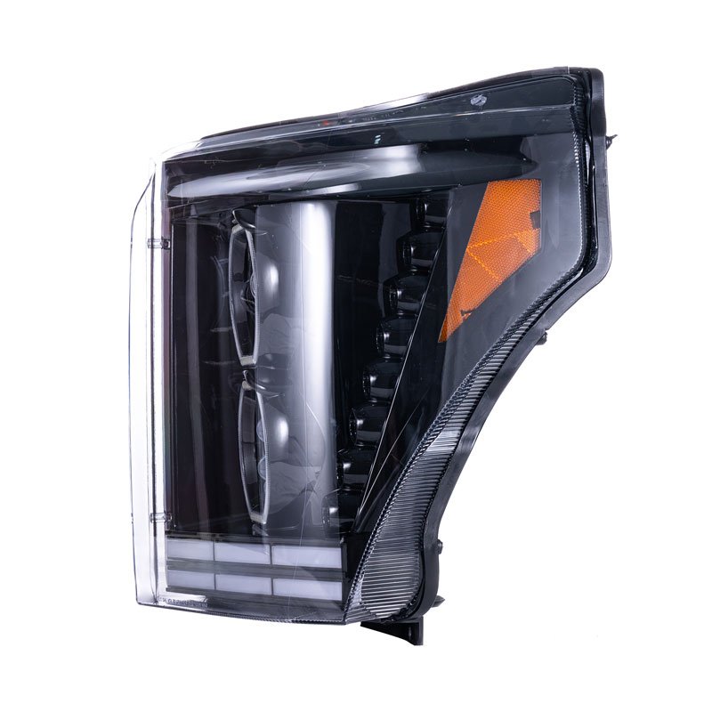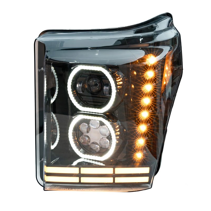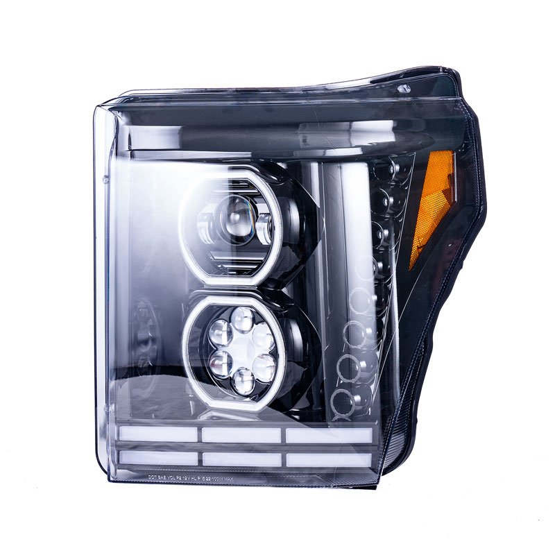 Designed specifically for Ford F250/F350/F450 2011-2016, this fully sealed LED headlight assembly offers a plug-and-play style replacement. Matching factory wiring allows for quick setup without drilling or modification, making it easy to upgrade your vehicle’s lighting system. The all-in-one design integrates high beam, low beam, parking light, turn signal, and daytime running light into a single housing, powered by premium CREE LED chips that deliver stable brightness, fast response, and consistent illumination for improved nighttime visibility. Unlike traditional reflector headlights, this assembly features projector-style optical lenses that provide better light control and a more focused beam pattern. The optimized optics reduce scattered light and glare while delivering clearer forward visibility and a cleaner cutoff, helping enhance driving safety without blinding oncoming traffic. Built-in beam adjusters on the rear housing allow precise vertical and horizontal alignment, ensuring the light output can be fine-tuned to meet road conditions and personal driving preferences. Engineered for long-term durability, the headlight is DOT and SAE approved and features an IP67-rated, one-piece sealed housing that resists water and dust in all weather conditions. A scratch-resistant, UV-protected PC lens helps prevent yellowing and aging over time, while the sealed rear cover minimizes moisture intrusion and unwanted noise. Optimized ventilation improves heat dissipation, reducing light decay and extending the overall lifespan of the headlight assembly.