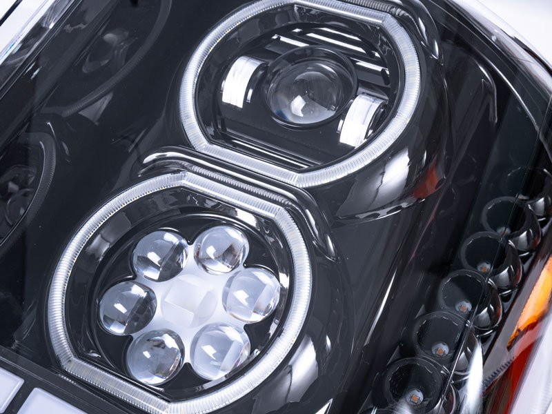 • Cleaner cutoff and improved light control compared to reflector headlights