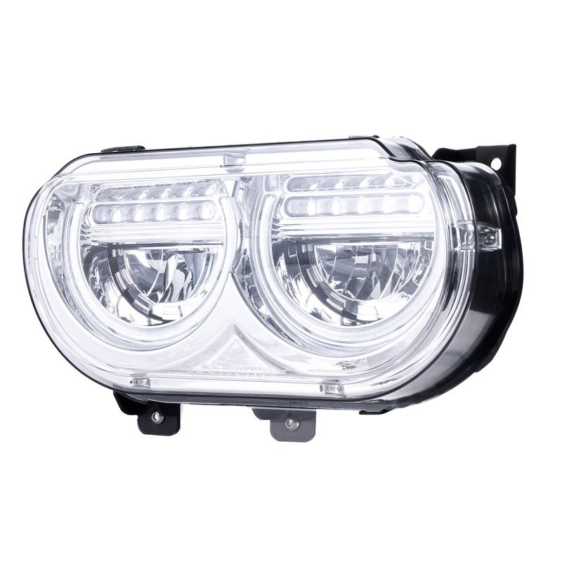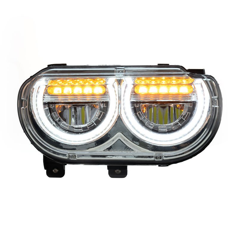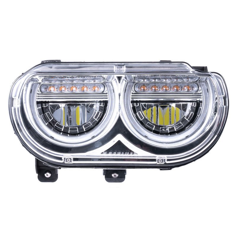 Designed specifically for Dodge Challenger 2008-2014, this fully sealed LED headlight assembly offers a plug-and-play style replacement. The all-in-one design combines high beam, low beam, turn signal, and daytime running light into a single unit, using premium CREE LED chips to deliver stable brightness, fast response, and long-lasting illumination for improved nighttime visibility. The precision reflector bowl design helps focus the beam and distribute light more evenly, while the open optical structure and rear ventilation ports promote faster heat dissipation, reducing heat buildup, minimizing light degradation, and extending LED lifespan. Built-in rear adjusters allow easy vertical and horizontal beam alignment to achieve optimal road coverage and driving comfort. DOT and SAE approved, the headlight features a fully sealed, IP67-rated one-piece housing with a scratch-resistant, UV-protected PC lens that resists yellowing, while the sealed rear cover keeps out water, dust, and noise for reliable performance in all weather conditions.